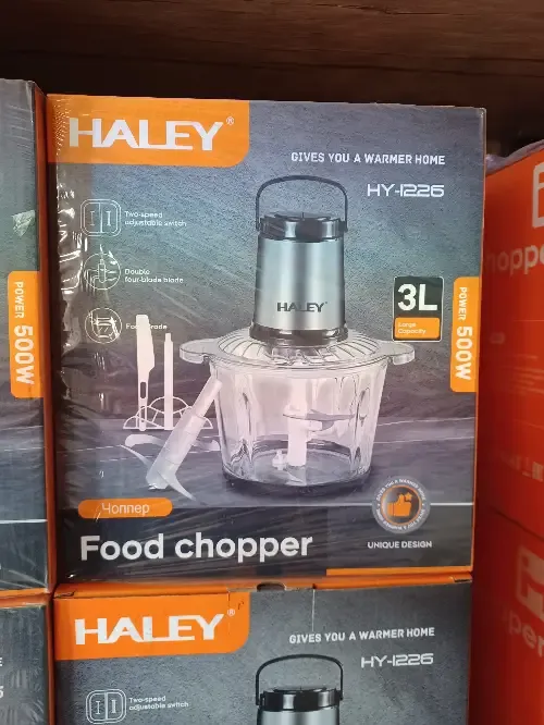 🥗 محضرة الطعام HALEY HY-1226 – السر في تحضير أسرع وأدق! اجعل تحضير الوجبات أسهل وأسرع مع محضرة الطعام HALEY HY-1226 المصممة لتمنحك أداءً قويًا وسعة كبيرة تناسب كل احتياجات المطبخ العصري. 🔪 المواصفات المميزة: قوة 500 واط لفرم ومزج مثالي في ثوانٍ. شفرات مزدوجة بأربع شفرات لنتائج دقيقة ومتجانسة. مفتاح بسرعتين قابل للتعديل لتحكم كامل حسب نوع المكونات. سعة كبيرة 3 لتر لتحضير كميات تكفي العائلة. مصنوعة من مواد غذائية آمنة لضمان صحة وسلامة الاستخدام. تصميم فريد وسهل التنظيف يجعلها مثالية للاستخدام اليومي. 📦 متوفرة بكميات كبيرة وأسعار منافسة للجملة والمفرق – مثالية للمطاعم، المحلات، والمنازل التي تبحث عن الجودة والعملية. 🍽️ اطلب الآن وابدأ بتحضير وصفاتك بكل سهولة واحترافية!