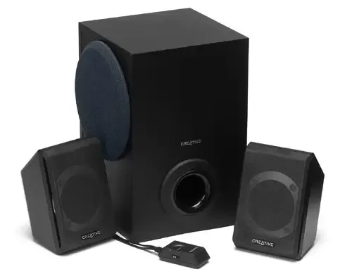 مجموعة صوتية ماركة Creative مؤلفة من موزع مع صوت وخمس سبيكرات صغيرة واحد منهم لا يعمل