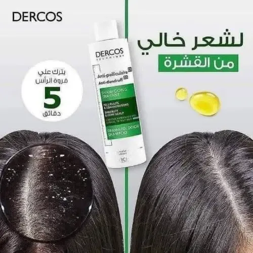 ✨ تخلص من القشرة والحكة مع شامبو فيشي ديركوس! بتركيبته الفعّالة الغنية بـ Selenium DS وحمض الساليسيليك، ينظف فروة الرأس بعمق ويزيل القشرة بنسبة 100%، مع حماية تمتد حتى 6 أسابيع. مناسب لفروة الرأس الحساسة والشعر العادي إلى الدهني.