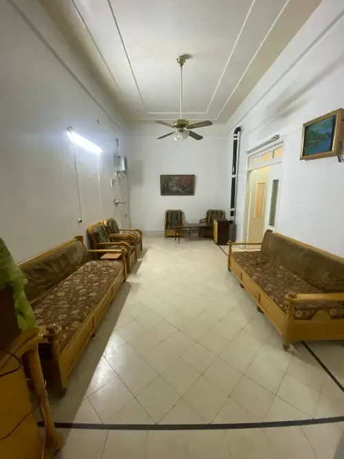 طابق اول مع مصعد دمشق المزرعة مساحة 137 م 3 غرف نوم وصالون ومطبخ وحمامين وبلكونة اكساء جيد مع الفرش