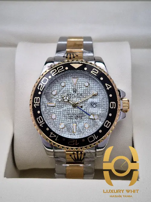 ROLEX GMT-MASTER II QUARTZ HIGH-QUALITY COPY 2 ساعة شبابية من رولكس الحركة كوارتز عداد شهري قرص متحرك حول الساعة شعار الماركة على مفتاح وقفل الساعة مينا الساعة مستوحاة من سطح القمر جودة عالية بوكس جلد كبير مع كرت وكيس كرتون من الشركة