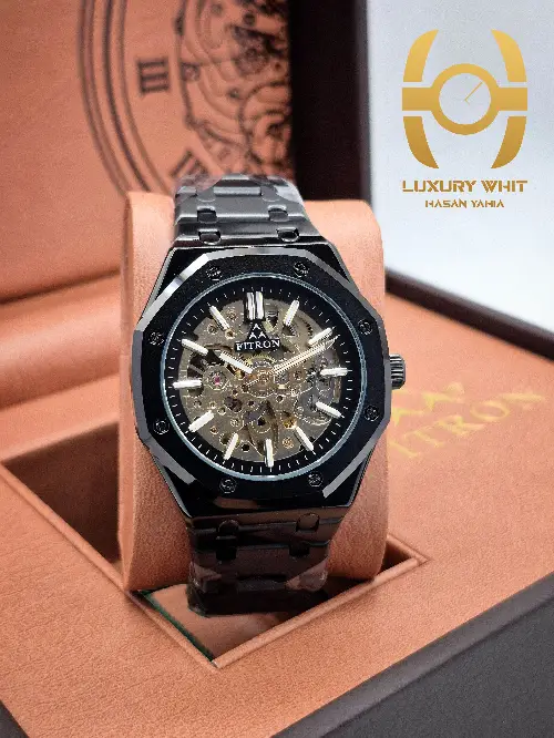 FITRON AUTOMATIC HIGH-QUALITY SIZE 40mm ساعة شبابية من فيترون كامل الساعة ستانلس ستيل الحركة اوتوماتيك ربط الماكينة ظاهرة من الخلف والامام مقاس 40mm شعار الماركة على مفتاح الساعه قفل ستانلس ستيل مختوم بأسم الماركة جودة عالية بوكس جلد كبير من الشركة