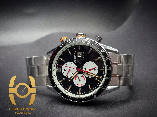 TAG HEUER CARRERA AUTOMATIC CHRONOGRAPH HIGH-QUALITY COPY 2 ساعة شبابية من تاغ هايير كامل الساعة ستانلس ستيل الحركة اوتوماتيك ربط الماكينة ظاهرة من الخلف عداد شهري كرونوغراف مقاس 40MM شعار الماركة على مفتاح الساعه قفل ستانلس ستيل مختوم بشعار الماركة جودة عالية
