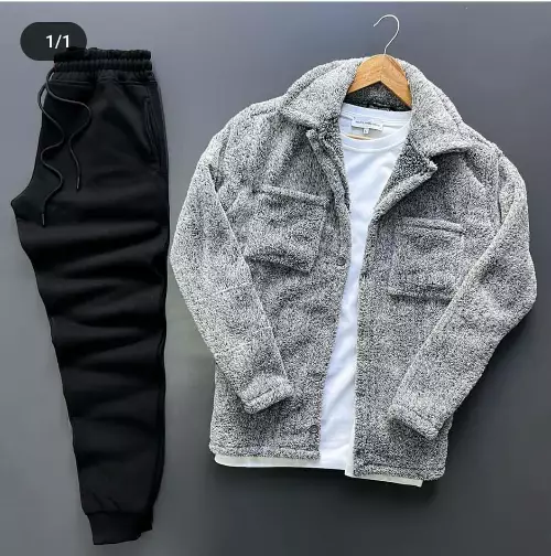 موديل حصريا من عنا وبس😎😎😎 طقم رجالي قماش فليس تركي عالأول ومكفول😎 مقاسات : M L XL XXL واتس 0959199808