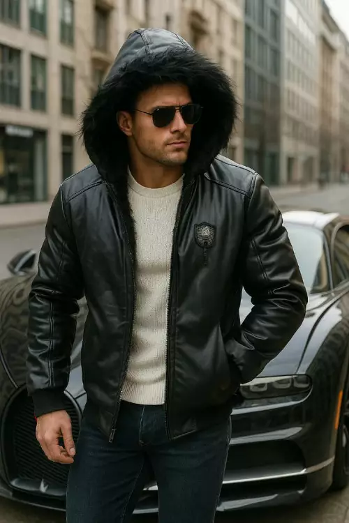 جاكيت جلد تقيل شبابي مبطن فرو مكفول من ايه عزر قطعه ولا اروع M.l.xl.xxl واتس 0959199808