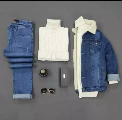 تريند 2025 ♥️♥️🥰 طقم شبابي قماش جنز اجنبي مبطن فرو كامل مكفول + كنزة قطن قبة عالية + بنطال جنز ليكرا مكفول M l xl xxl بنطال من 38 ل48 واتس 0959199808