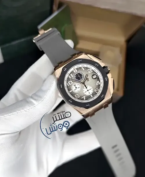 يسحرك الجمال المختبئ بتفاصيلها وتناغم ألوانها مما ينتج عنها لوحة فنية رائعة من أوديمار بيغيه off shore 🩶 المطلية بالذهب الوردي ⏱كوبي 1 A.A.A ⚙️ماكينة كوارتز كرونوغراف كامل مايوتا يابانية الصنع فائقة الدقة مع عداد للشهر و عداد رياضي لقرائة الوقت المنقضي بالدقائق و الساعات 💎عدسة من زفير الكريستال المقاوم للخدش وكستك من الرابر الفاخر 📐مطابقة لابعاد ووزن واختام الاورجينال مرفقة بالعلبة والملحقات الاساسية 🥇متوفرة الان ▪️كفالة لمدة سنة ▪️ للطلب والاستفسار اتصال او واتساب:0988644509